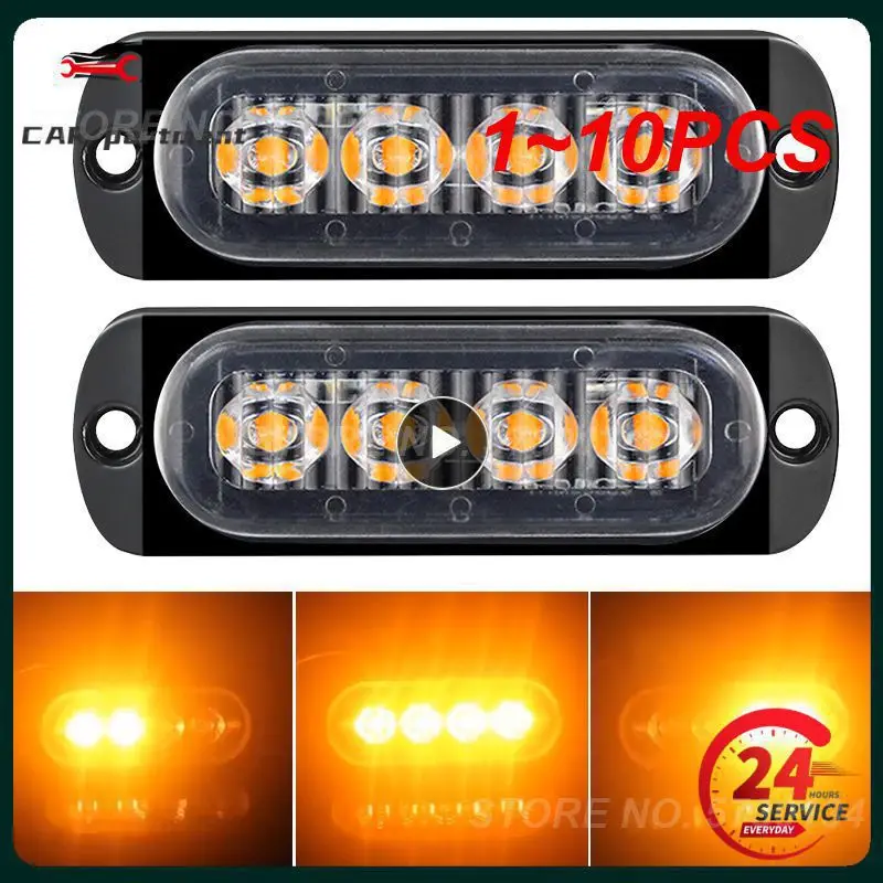 1~10PCS Led Strobe Side Warning Light Strobe Grille Flashing Lightbar Car Truck Beacon Lamp Amber Yellow White Traffic Light 12V