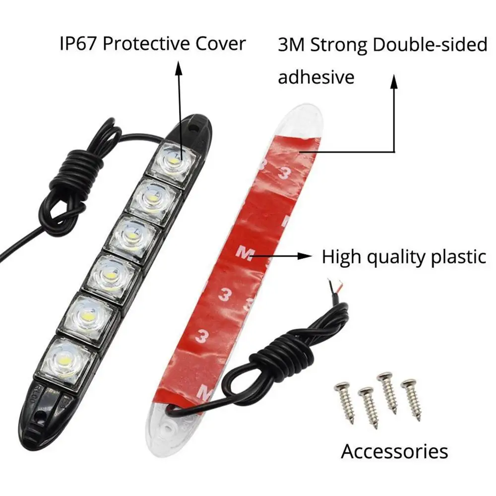 Connect the red wire with the fuse to the ACC, and the black wire to the negative pole or the iron. The car starts the day running light automatically on, the car turns off, the day running light goes out, super stable performance! Can be connected to the corresponding power supply according to different needs, such as: day lights, red line can be connected to the ignition switch, black wire to achieve auto ignition lights; When the reverse lamp is used, the red line can be connected to the positive pole of the reverse lamp, and the black line can be connected to the negative pole to realize the light when the reverse lamp is turned on; In the same way, the red line is connected to the positive pole, the black line is connected to the negative pole, and the power is on, and the power is off.