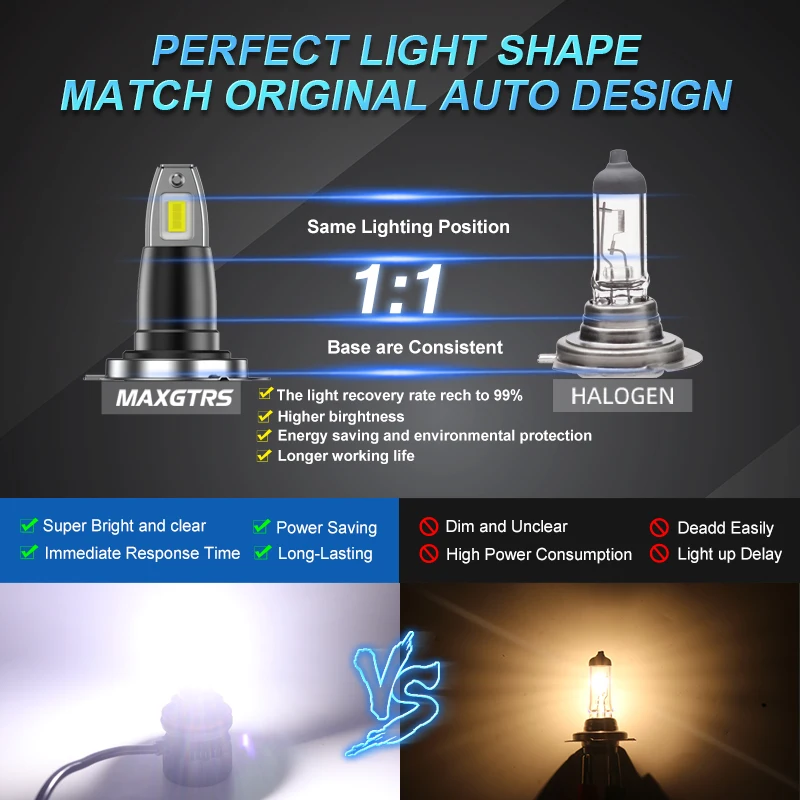 All-in-One New Design LED Headlight (built-in fan and drives ) replaces your standard halogen headlight bulbs or fog lights. These new LED bulbs produce 6000 lumens of light compared to 900-1000 lumens with regular halogen bulbs.