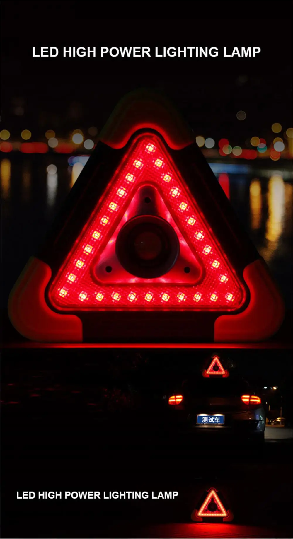 - Key Words 3: Car Triangle Warning Light Portable