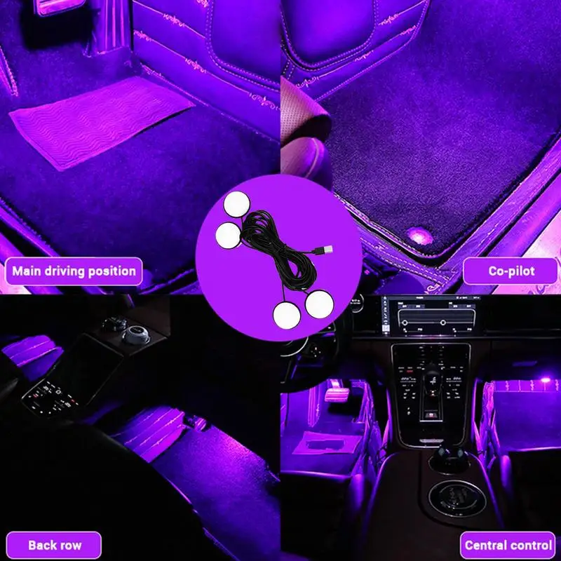 4.4 Lights with Vibrant Colors: Car interior LED lights are designed with 4 lights and vibrant lights. You can use them to light up your car foot mat, under the dashboard, under the seats, etc.