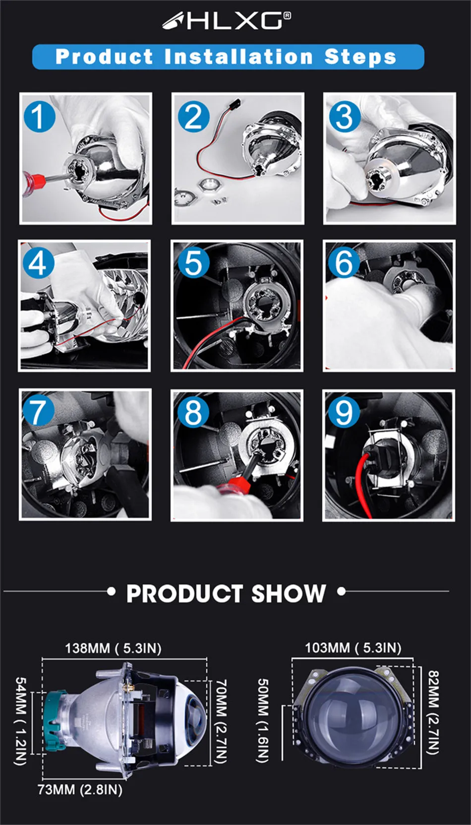 This replacement projector lens is the best option for upgrading cars that came with older 3″ bi-xenon HID projectors or Halogen projectors, and it’s also ideally shaped for a traditional retrofit too.